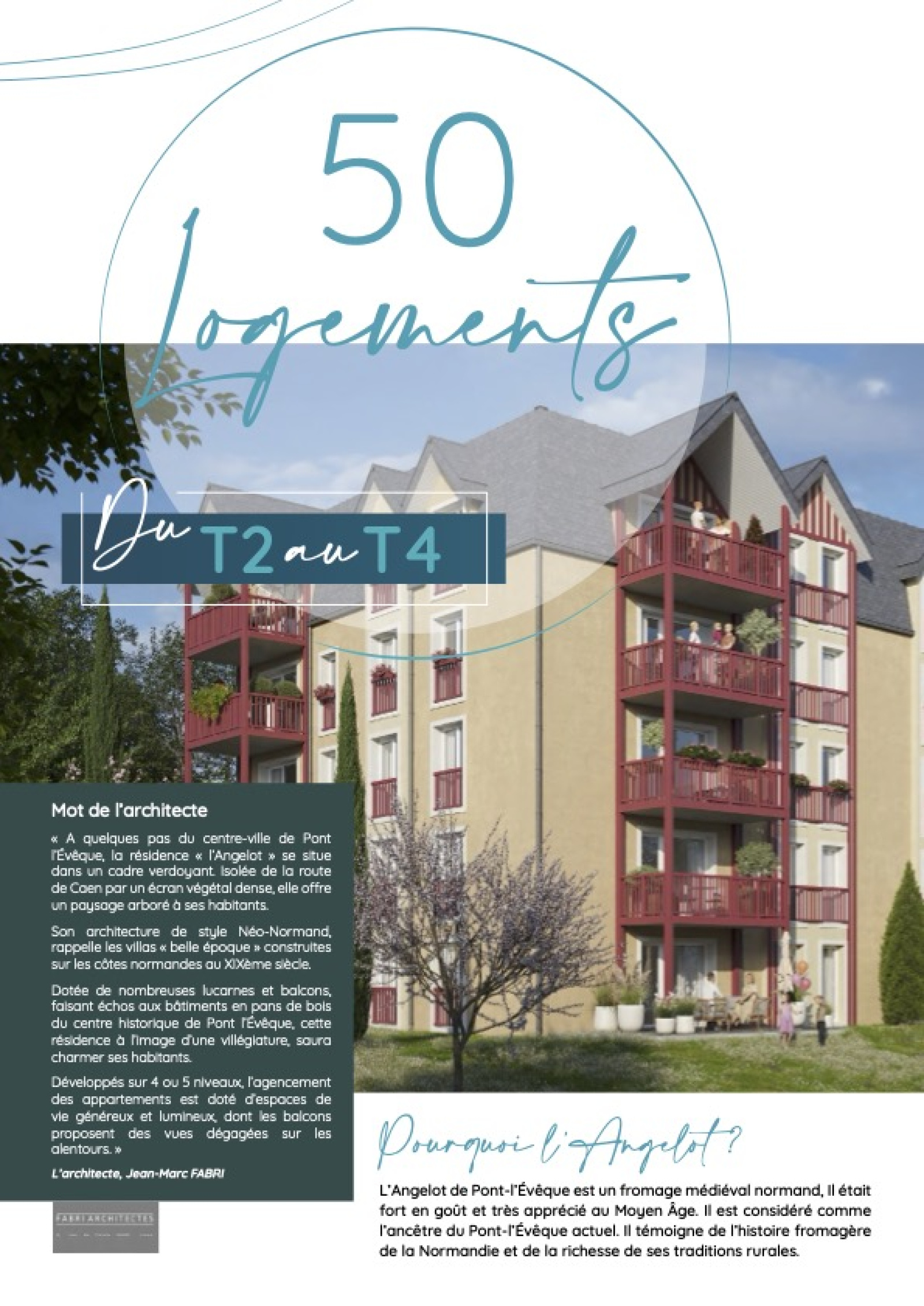 A quelques pas du centre-ville de Pont rêvéque, la résidence « l'Angelot » se situe dans un cadre verdoyant Isolée de la route de Caen par un écran végétal dense, elle offre un paysage arboré à ses habitants.