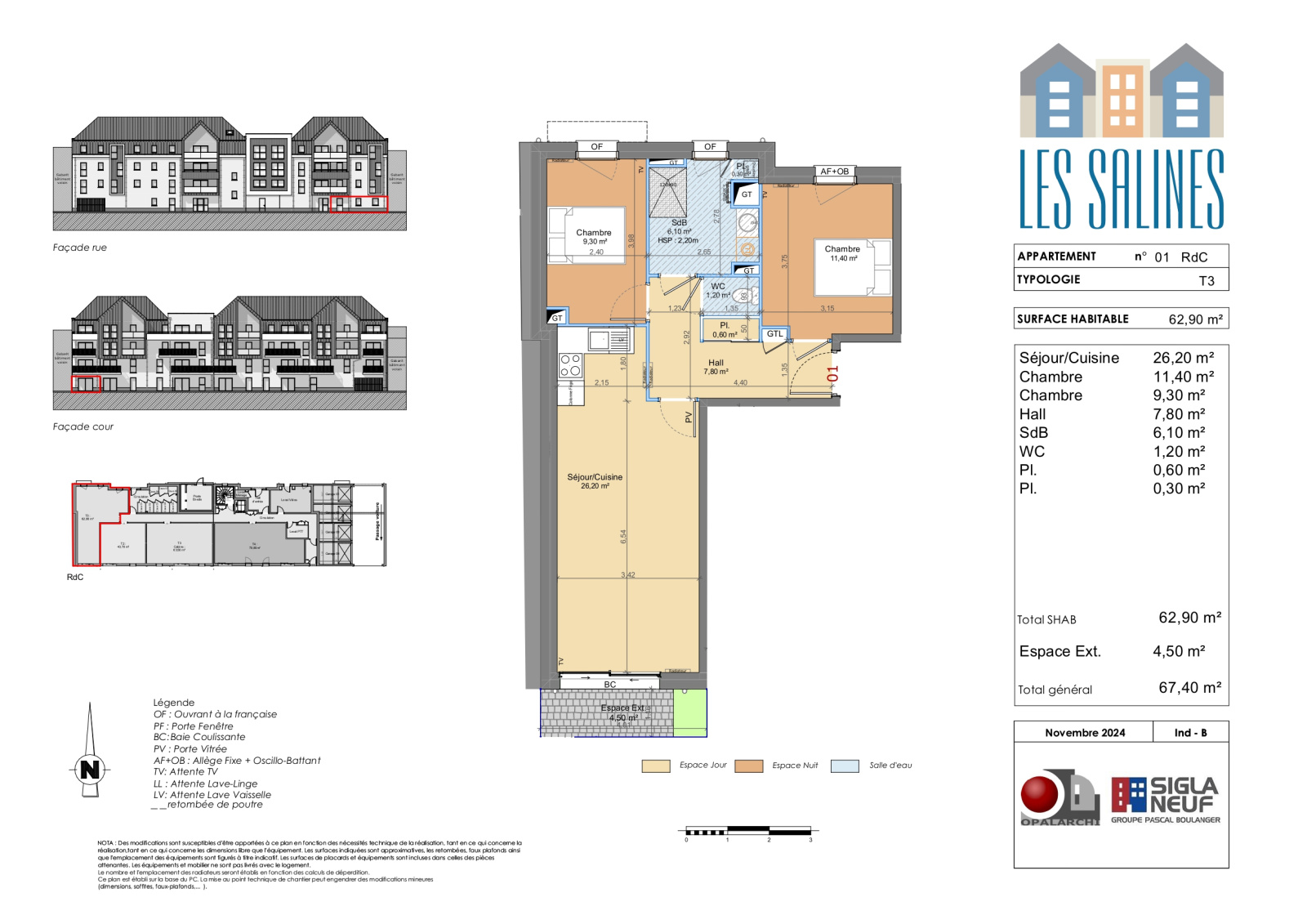 Comprenant : Hall d’entrée, séjour cuisine 26m2 avec balcon, 2 belles chambres, dressing, SDB, WC, garage, chauffage gaz, RT 2012