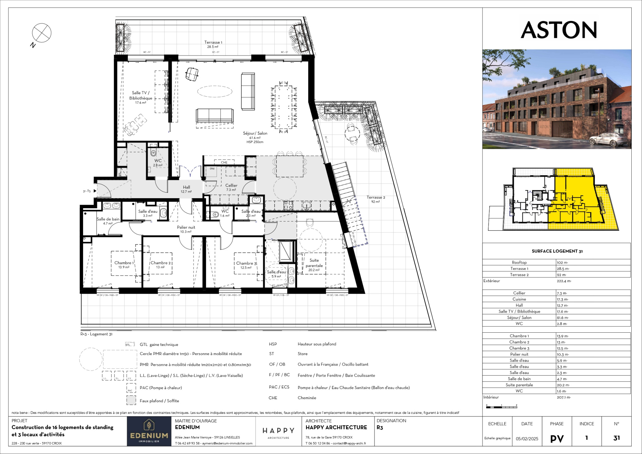APPARTEMENT PENTHOUSE de 6/7 PIECES ROOFTOP N° 31 – 207 m2 HAB