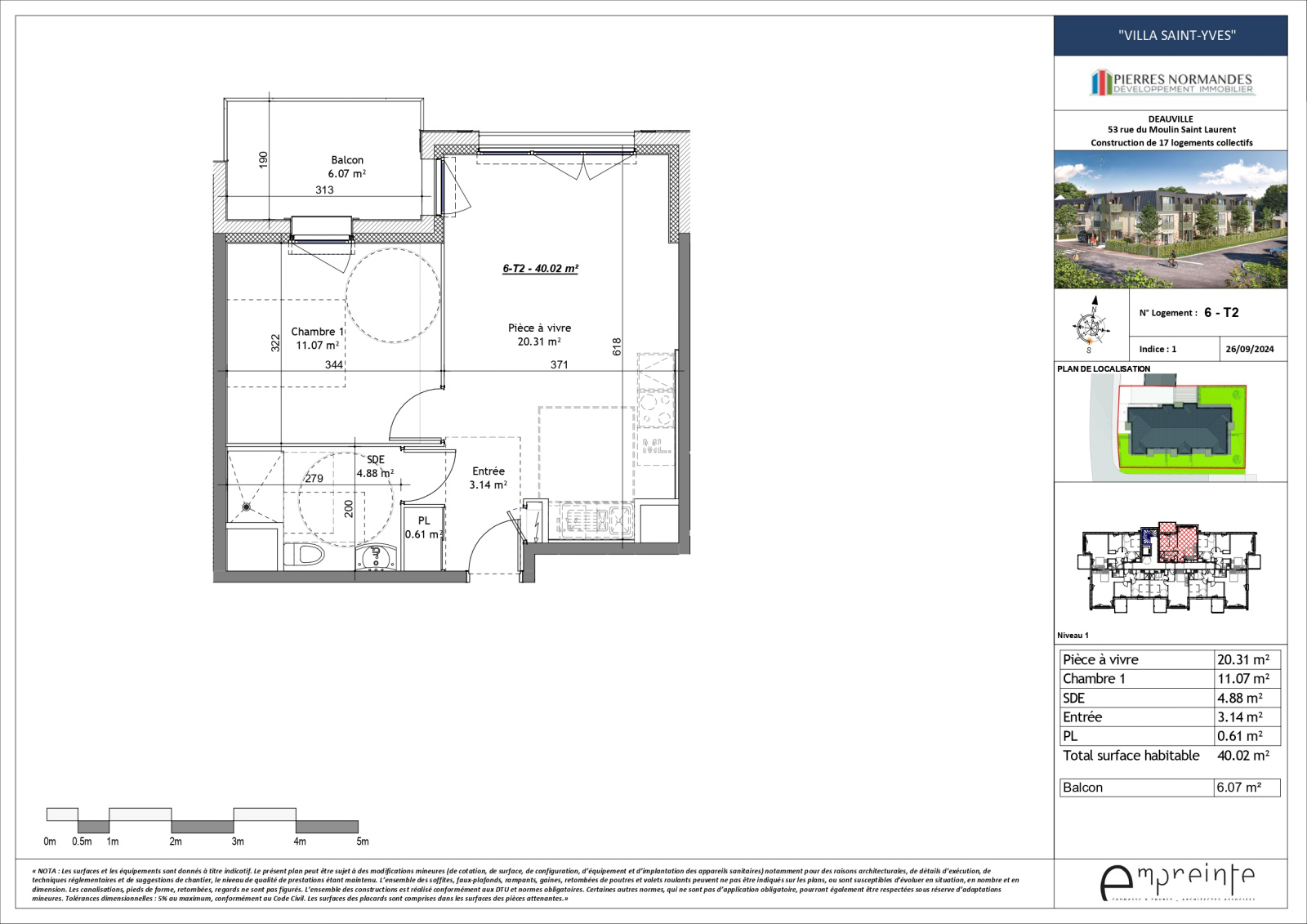 VILLA SAINT-YVES À DEAUVILLE - BEL APPARTEMENT 2 PIECES N°6 – 40 m2 – Balcon