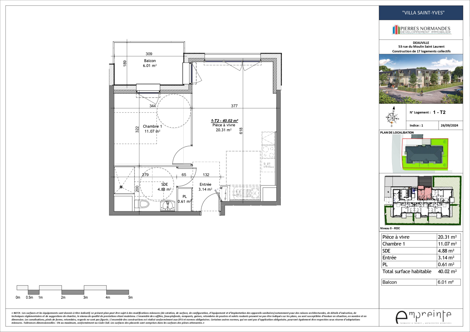 VILLA SAINT-YVES À DEAUVILLE - BEL APPARTEMENT 2 PIECES N°1 – 40 m2 – Balcon